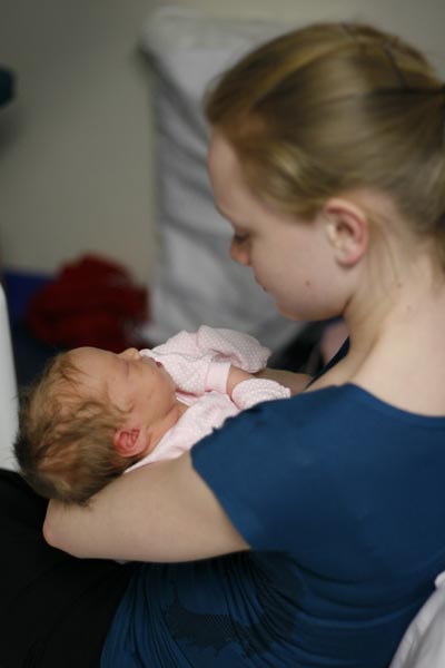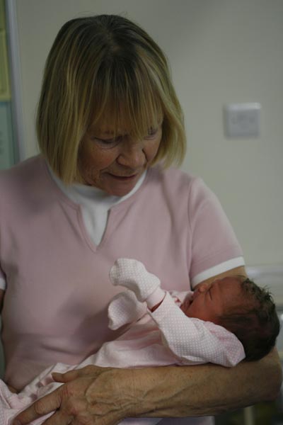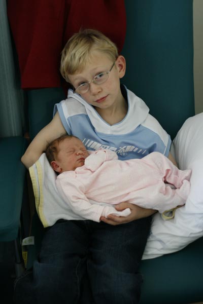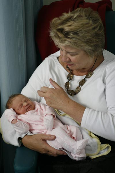 Amelia, gets to meet both Grandmas and is in great demand by her big sisters and brothers again. After a long night, she sleeps happily in their arms.