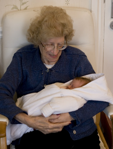 Today the eldest and the youngest of the family met. Worrybombs Great Grandma thought she was lovely.
