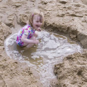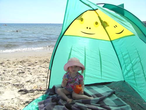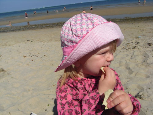 With a little trepidation, she managed to overcome her fear of the sand, the damp sand and the sea to really enjoy herself.