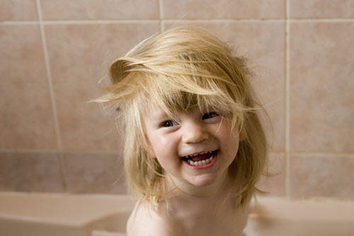 Washing off the sand and salt in the bath ( great hair ! )