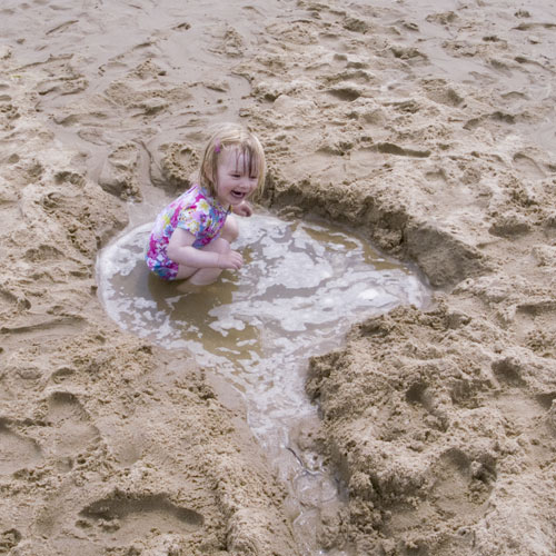 Running up and down the small puddles left by the retreating tide
