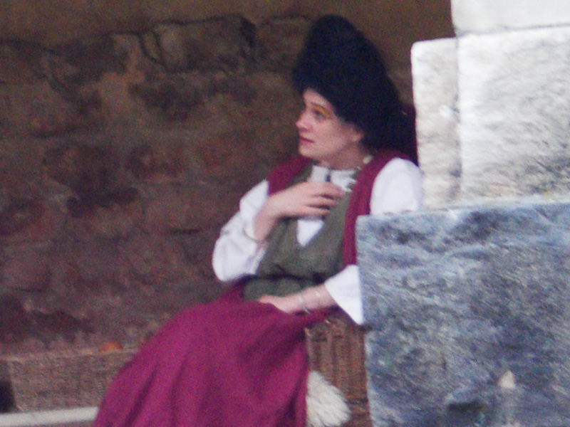 Whilst walking around the Baths, we spoke to a Roman lady and her slave. They told us we should be using Portuguese Urine to keep us from needig wooden false teeth. We were invited to a banquette ( with roast dormice ( stuffed with nuts and dipped in honey )) and and Worrybomb was complemented in her fine pink fur coat.