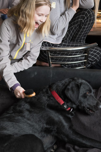 Brushing Max whilst avoiding Spencer nipping at socks