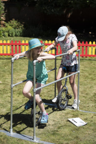 We started the day watching the very funny Pina Polar. She had a great show with lots of very funny bits. Then off to the magic and juggling show where Cousin L and Worrybomb had a go at uni-cycling.