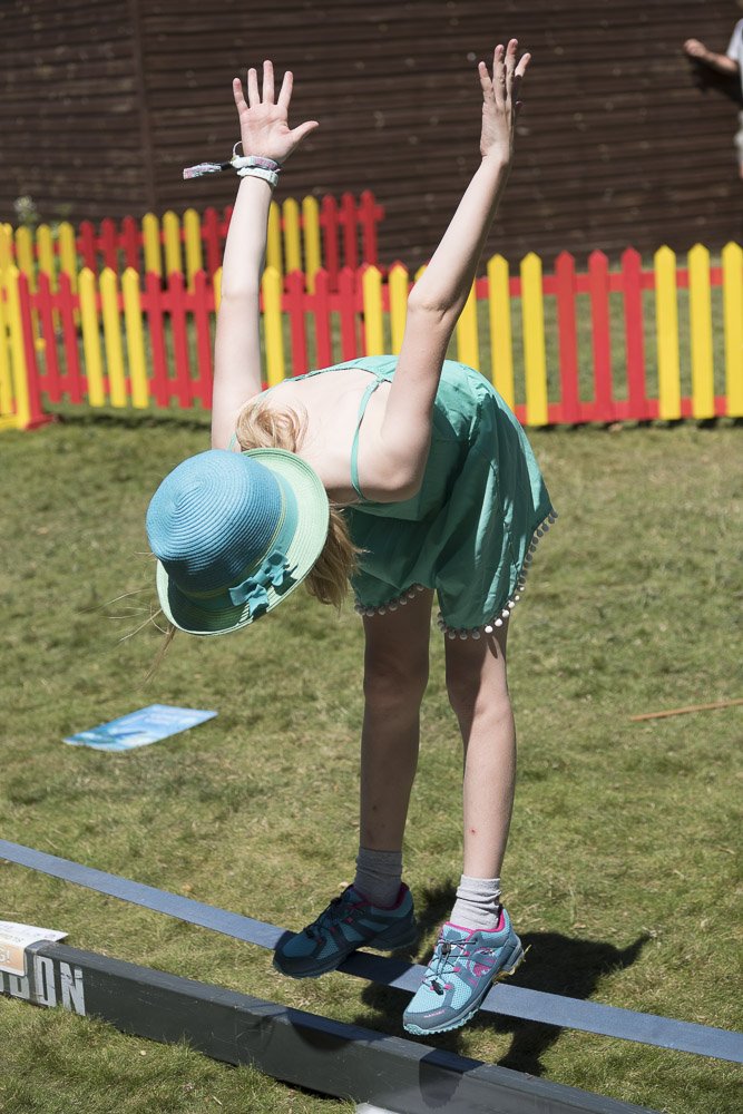 We started the day watching the very funny Pina Polar. She had a great show with lots of very funny bits. Then off to the magic and juggling show where Cousin L and Worrybomb had a go at uni-cycling.